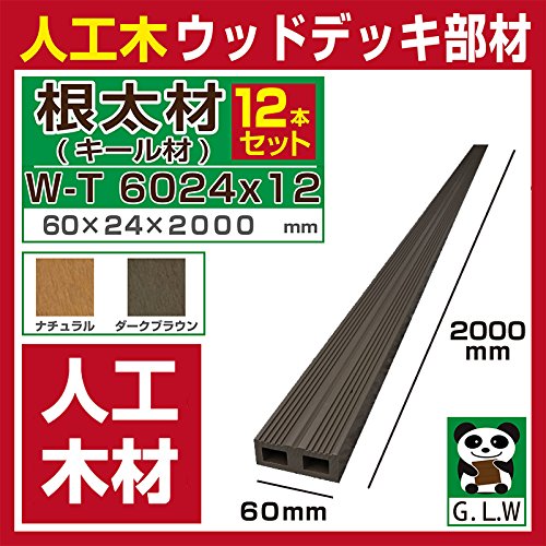 ウッドデッキ 人工木材 人工木 部材 樹脂 ウッドデッキ キール材 根太材 W-T6024 60×24×2000mm【W-T6024】【2色選択可】 (ダークブラウン・12本セット)