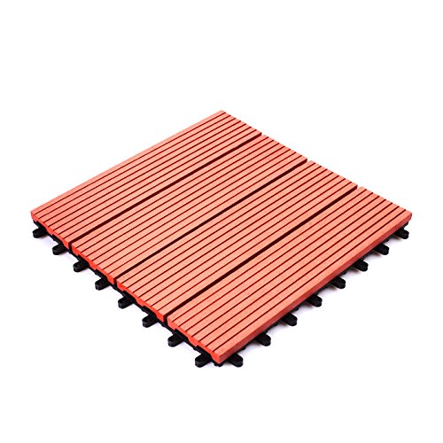 ウッドパネル ウッドタイル ウッドデッキ 人工木 27枚セット 樹脂 ベランダタイル ジョイントパネル 木製タイル (タイプB・ナチュラルレッド)