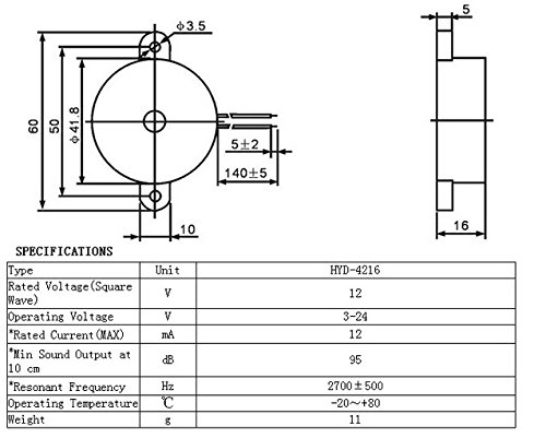 • 1 x 95DB圧電ブザーアラーム