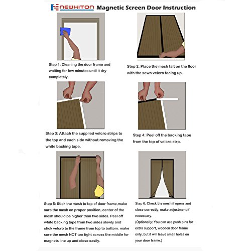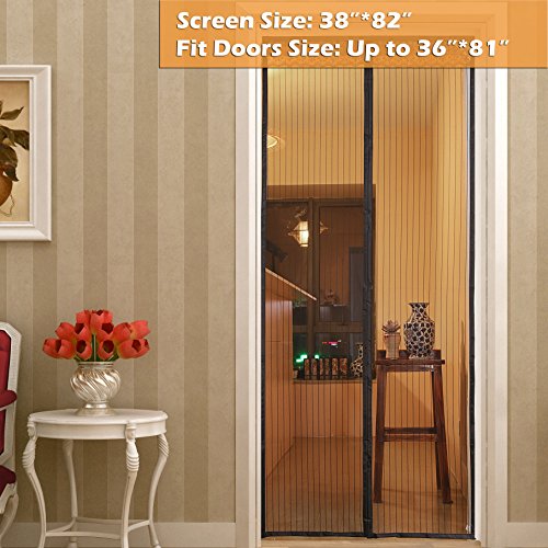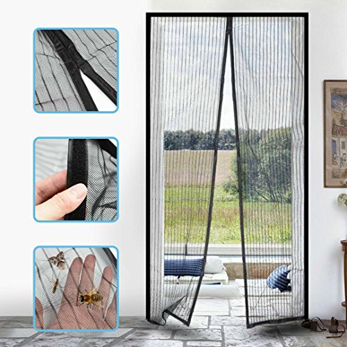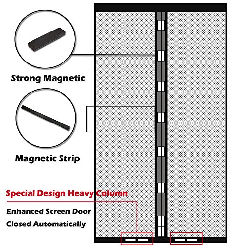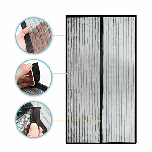 Newkiton マグネット式網戸、磁気スクリーンドア、フルフレームベルクロ、タフメッシュ、爽やかな風を取り込んで、蚊などの虫をシャットアウト、涼しい夏、取り付けが超簡単(90 x 210cm、ブラック)