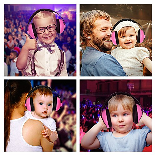 Newkiton 子供用防音イヤーマフ 遮音値27dB 折りたたみ式 耐摩素材 超弾力性 建設作業 聴覚過敏 騒音対策 射撃 等様々な用途に (ピンク)