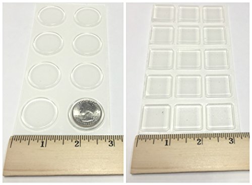 1インチクリア粘着バンパーコンボパック(正方形、円) – Made in USA – のセット23透明ガラスの保護パッド、セルフスティックラバーパッドガラステーブルトップ、家具フィート,画像フレーム
