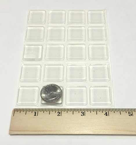 1インチの正方形粘着バンパー – 20のセットクリアガラス保護パッド、セルフスティックラバーパッドガラステーブルトップ、家具フィート、写真フレーム、まな板、キャビネットドア