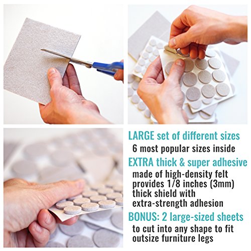 seddoxプレミアムフェルト家具パッドセット – 152ピースIncludingボーナスゴムノイズバンパー – Extra粘着Hardwoodの床プロテクター、フェルトパッド椅子脚 S ベージュ Seddox