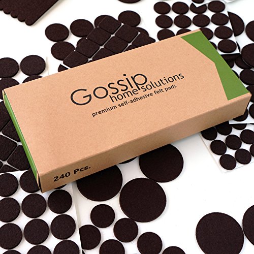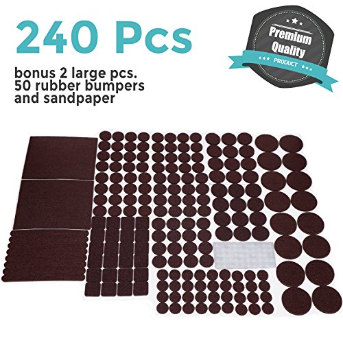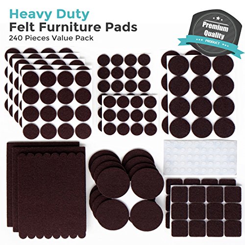プレミアム家具パッドセット240個Large Packブラウン – Heavy Duty用粘着フェルトパッド家具脚、各種サイズのノイズダンピングクリアゴムバンパー