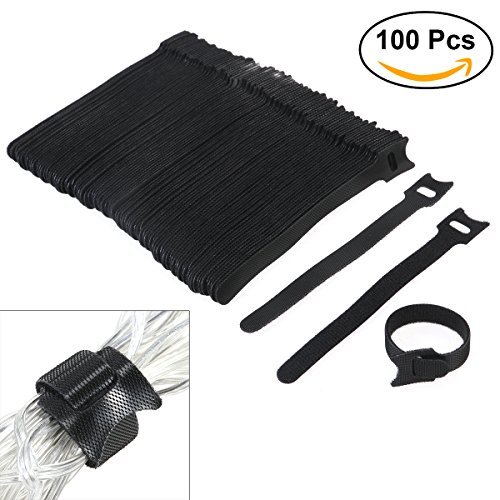 Tinksky Nylon Cable Ties 6 Inch Fastening Cable Ties with Reusable Hook and Loop Strap Cable Ties for Organizer Fastening - 100 Pack (Black)