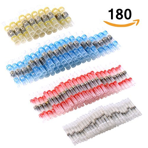 180pcs Solder Seal Wire Connectors Sopoby Heat Shrink Butt Connectors Electrical Waterproof Automotive Terminals with Case (60 Red 60 Blue 45 White 15 Yellow)