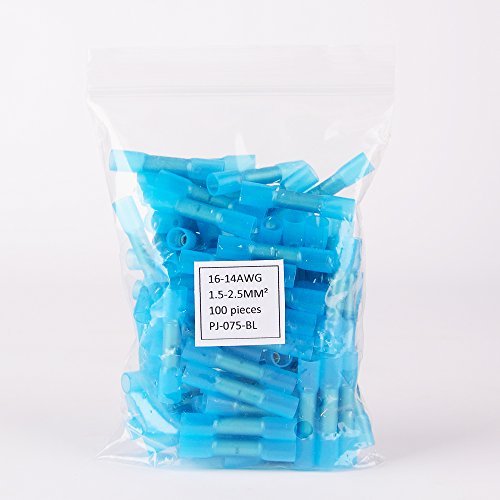 Iztor 100pcs Insulated Heat Shrink Butt Wire Electrical Crimp Terminal Connector 16-14AWG blue