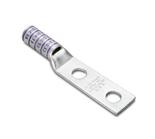 Burndy YAZ28-2TC38 Two Hole Hylug Code Conductor Long Barrel Copper Compression Terminal with Inspection Window 4/0 AWG Conductor 3/8 Stud Hole Size 1 Stud Hole Spacing 1.02 Tongue Width 3.99 Length Purple