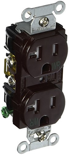 Hubbell BR20WRTR Weather/Tamper Resistant Common Ground 20 amp 125V 5-20R Brown