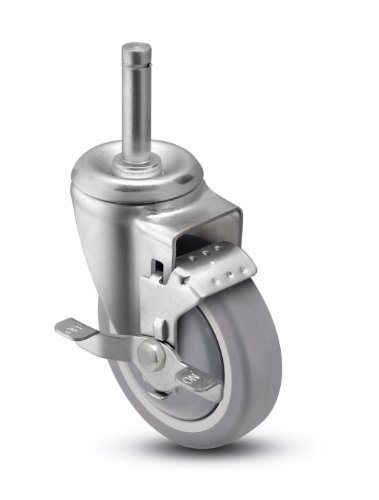 Shepherd Institutional Series 5 Diameter Precision Bearing TPR Wheel Swivel Caster with Tread Brake 7/16 Diameter x 1-7/16 Length Brass Band Grip Ring Stem 280 lbs Capacity