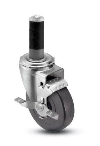 Shepherd Institutional Series 5 Diameter Nylon Bearing TPR Wheel Swivel Caster with Tread Brake Expanding Stem 280 lbs Capacity Fits 1-1/4 - 1-5/16 Round Tube Diameter