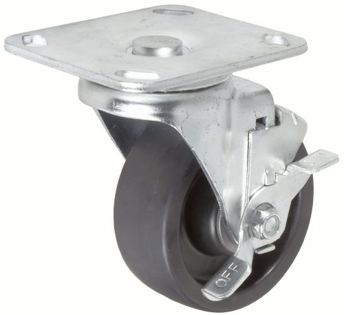 RWM Casters 30 Series Plate Caster Swivel with Brake Polyolefin Wheel Roller Bearing 375 lbs Capacity 4 Wheel Dia 1-1/2 Wheel Width 5-3/8 Mount Height 4-1/4 Plate Length 3-3/4 Plate Width