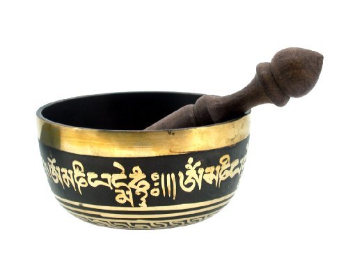 Black and Gold Tone Straight Sides Handmade Tibetan Singing Bowl Rin Gong 4 Free Wood Mallet [並行輸入品]