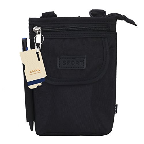CACHIL Sweatproof Nylon Big Capacity Crossbody Bag Cell Phone Belt Pouch Hiking Waist Pack for 6 inch smartphones - Black