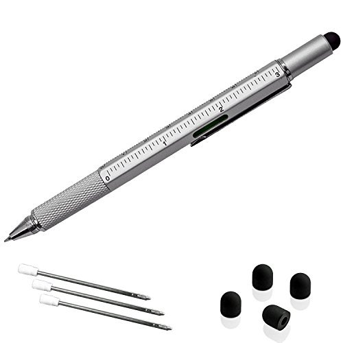 Olixar 6 in 1 Pen - Screwdriver Spirit Level Stylus + Ruler - Multi Function/Multi Tool HexStyli + Refills + Stylus Tips - Value Pack - Silver