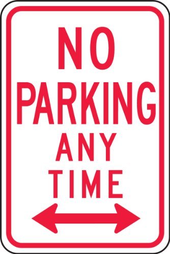 Accuform Signs FRP716RA Engineer-Grade Reflective Aluminum Parking Sign Legend NO PARKING ANY TIME (DOUBLE ARROW) 18 Length x 12 Width x 0.080 Thickness Red on White