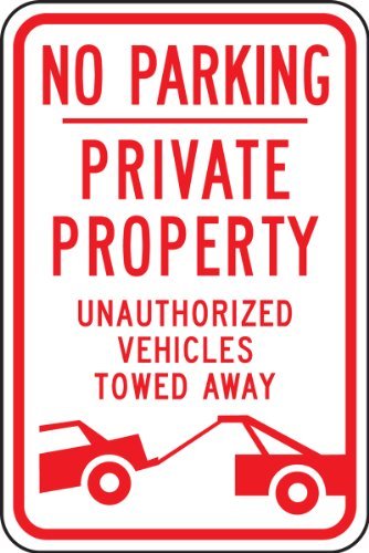 Accuform Signs FRP151RA Engineer-Grade Reflective Aluminum Parking Sign Legend NO PARKING PRIVATE PROPERTY UNAUTHORIZED VEHICLES TOWED AWAY with Graphic 18 Length x 12 Width x 0.080 Thickness Red on White