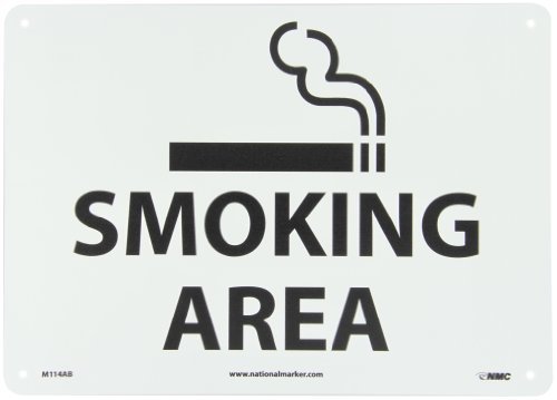 NMC M114AB No Smoking Sign with Graphic Legend SMOKING AREA 14 Length x 10 Height Aluminum 0.040 Black on White