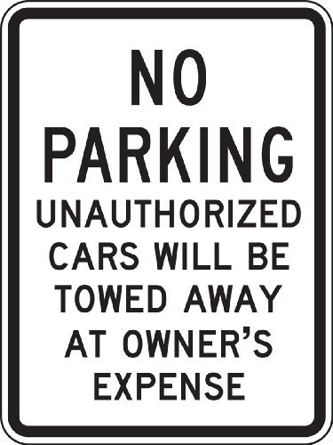 Accuform Signs FRP252RA Engineer-Grade Reflective Aluminum Parking Sign Legend NO PARKING UNAUTHORIZED CARS WILL BE TOWED AWAY AT OWNER'S EXPENSE 24 Length x 18 Width x 0.080 Thickness Black on White [並行輸入品]