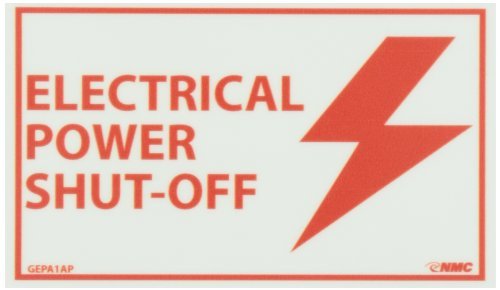 NMC GEPA1AP Lock Out/Shut Off Label Legend ELECTRICAL POWER SHUT-OFF with Graphic 5 Length x 3 Height Glow Polyester Red on White (Pack of 5)