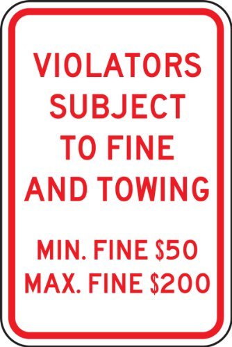 Accuform Signs FRA210RA Engineer-Grade Reflective Aluminum Handicapped Parking Sign (Pennsylvania) Legend VIOLATORS SUBJECT TO FINE AND TOWING - MIN. FINE $50 MAX. FINE $200 18 Length x 12 Width x 0.080 Thickness Red on White [並行輸入品]