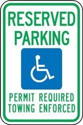 Accuform Signs FRA187RA Engineer-Grade Reflective Aluminum Handicapped Parking Sign (Arkansas) Legend RESERVED PARKING PERMIT REQUIRED TOWING ENFORCED with Graphic 18 Length x 12 Width x 0.080 Thickness Green/Blue on White