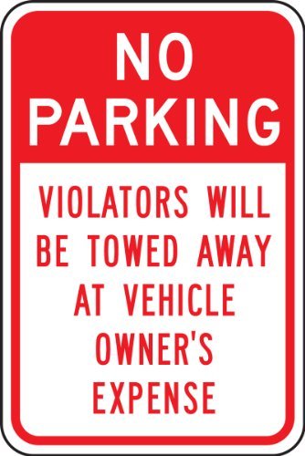 Accuform Signs FRP171RA Engineer-Grade Reflective Aluminum Parking Sign Legend NO PARKING VIOLATORS WILL BE TOWED AWAY AT VEHICLE OWNER'S EXPENSE 18 Length x 12 Width x 0.080 Thickness Red on White