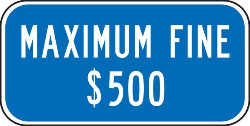 Accuform Signs FRA258RA Engineer-Grade Reflective Aluminum Handicapped Parking Supplemental Sign Legend MAXIMUM FINE $500 6 Length x 12 Width x 0.080 Thickness White on Blue
