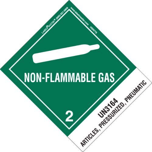 Labelmaster HSN7750 Non-Flammable Gas Label UN3164 Articles Pressurized Pneumatic Hazmat 4.75 x 4 (Pack of 500)