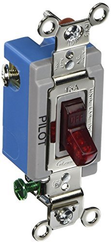 Hubbell HBL1201PL Single Pole Toggle Industrial Grade 15 amp 120/277V Pilot Light Red