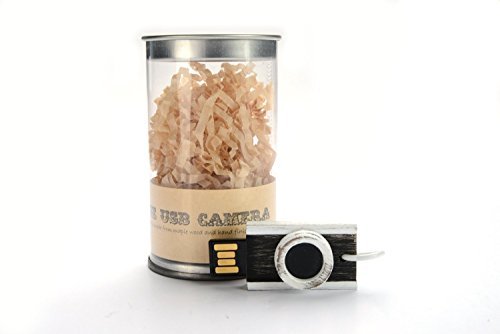 16GB Hand Made Maple Wood - Antique Finish Camera - Retro Style USB 2.0 Flash Drive - Comes in a Gift Tube with Raffia grass - Black Body White Trim Camera [並行輸入品]