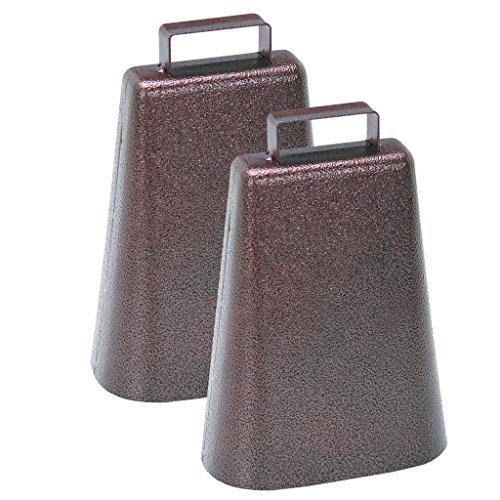 7 Inch Steel Cow Bell with Handle and Antique Copper Finish 2-Pack