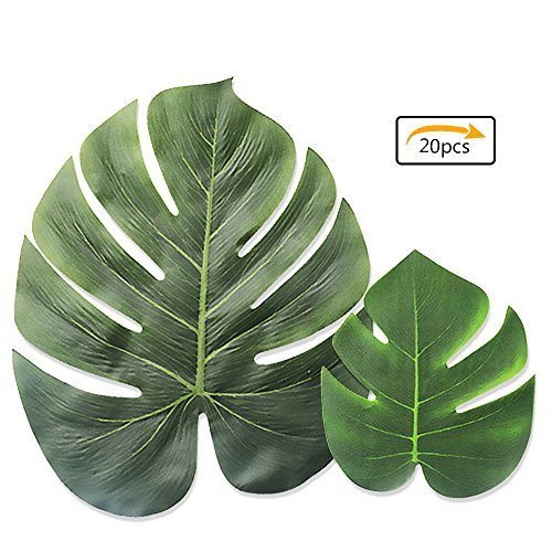 LEOBRO Tropical Palm Leaves Simulation Leaf Artificial Tropical Green Plant Leaves 13 Inch and 8 Inch combination leaves for Hawaiian Luau Party Decoration Shipping by FBA (20 Pieces)
