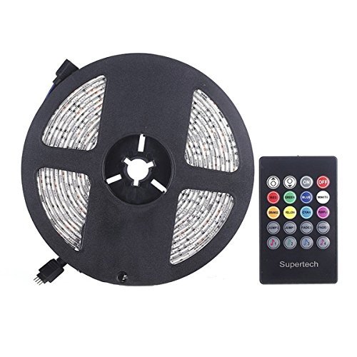 Supertech RGB SMD5050 300 Leds 5M Waterproof Sound Actived Flexible Led strip lights Kit With 20Keys Music Sound Sense IR controller and 12V 5A Power Supply for Indoor and Outdoor