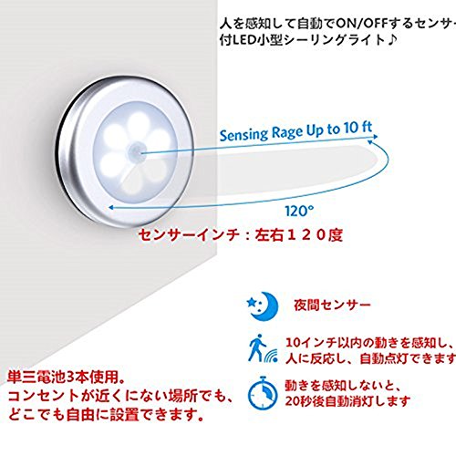 GreeSuit LEDセンサーライト 人感センサーライト LEDライト 光センサーライト LEDランプ ワイヤレス 電池式 昼白色 クローゼット・本箱・壁面・物置・廊下などの場所の照明用 シルバー
