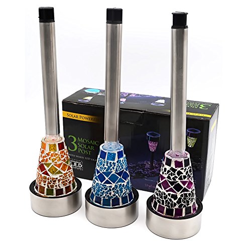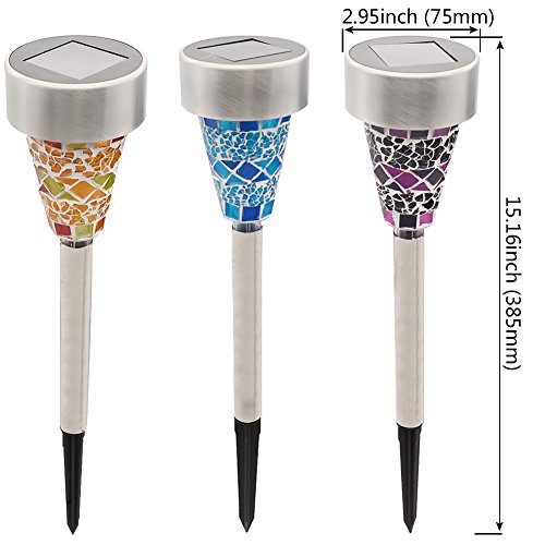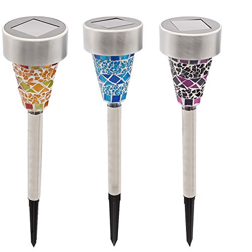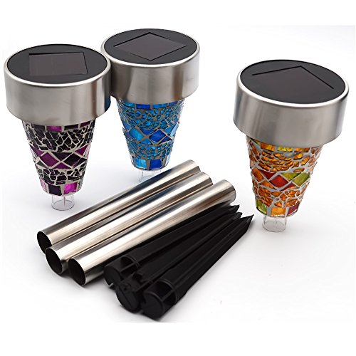 GreeSuit ステンドグラス風 ソーラーライト ガーデンライト(3本セット) 自動点灯/自動消灯