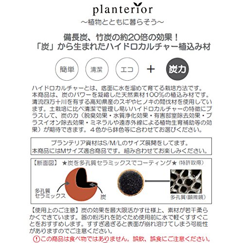 - 他プランテリアシリーズの資材(水位計、イオン交換樹脂栄養剤、ハイドロポット苗等)のMサイズと容量がおおよそ適合します。オリジナルのインテリアグリーンを作られる際にご活用ください。