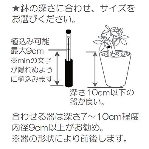 ハイドロカルチャー(水耕栽培)の管理に便利な水位計です。ハイドロカルチャーは、土の代わりに礫材などで植物を植え込み、底面に水を溜めて育てる栽培方法です。 陶器など鉢底に溜まっている水量がわからない器でも、水量をメモリ針で確認いただけ、お水やり のタイミングがわかります。