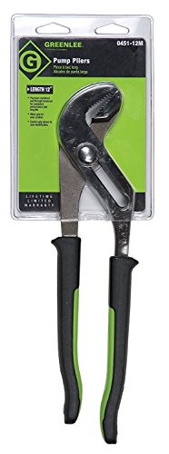 Product Description Greenlee 0451-12M Specifications:Overall Length: 12' (30.5 cm)Weight: 1.29 lbs. (.59 kg)Adjustment Groves: 7Jaw Capacity: 2-1/4' (5.7 cm)Greenlee 0451-12M Features:Custom grip allows area for user identification.Slip-proof, ergonomic molded grip for increased comfort and reduced user fatigue.Wider grip design provides larger load bearing area.Precision-machined and through-hardened for consistent performance and longer life.Right-angled teeth for gripping in both directions.Riveted process ensures joint integrity.Exceeds ASME/ANSI specifications.Lifetime limited warranty.Note: This is not an insulated tool. From the Manufacturer Greenlee's molded grip pump pliers are precision-machined and through hardened for a consistent performance and longer lifetime. They feature right-angled teeth for gripping in both directions and the riveting process ensures joint integrity. The slip-proof, ergonomic molded grips allow for increased comfort and reduced user fatigue.. The pump pliers are a great addition to any tool kit.
