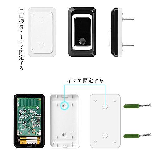 - 【取り付け便利】ドアベル送信機はネジでドアフレームに固定されて或いは両面接着テープを利用してドアに付着させます。ドアチャイム受信機は電池カバーを開けて単4形電池を3本入れてカバーを閉めて使えます。取り付け方でも非常に簡単です。家、アパート、ヴィラ、オフィス、店、倉庫などは安心してお使い頂けます。