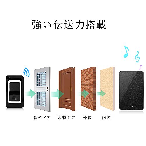 - 【300m無線作動範囲】このワイヤレスドアベルは高感度受信機採用で、電波の飛距離は屋外見通し、最大300mの無線範囲をサポートできます。