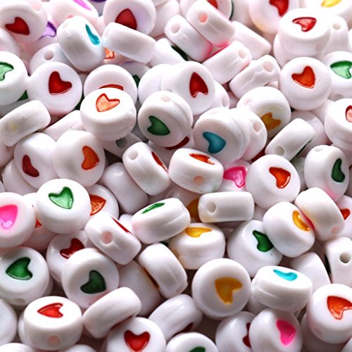 gresorth 900個ラウンドアクリルハート形状ビーズマルチカラービーズDIY手作りネックレス、子供の教育4 x 7 mm