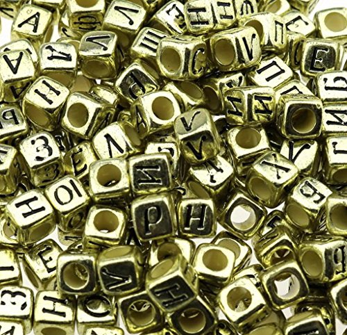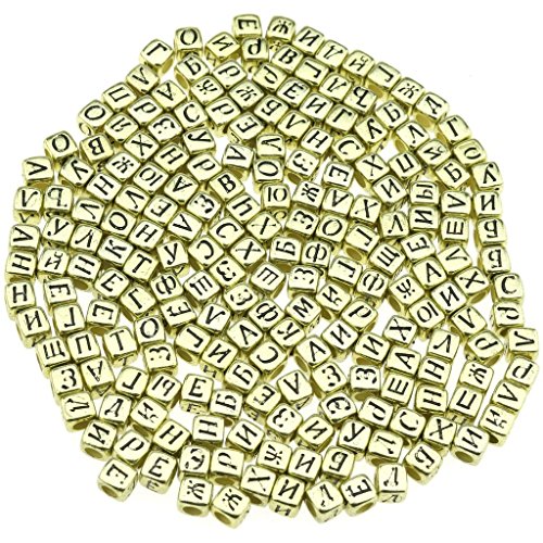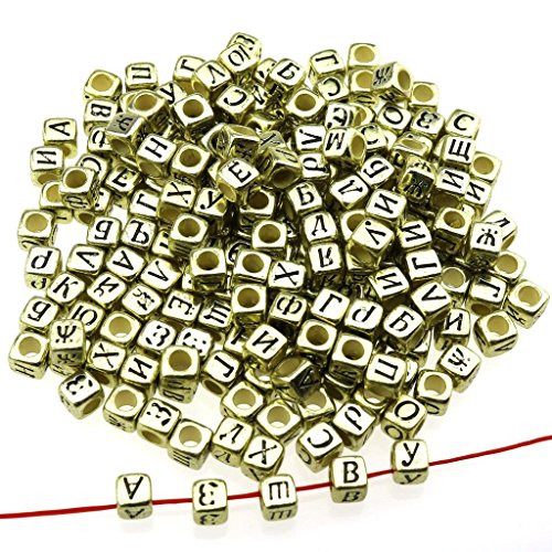 gresorth 800個古代ゴールドキューブアクリルロシア文字ビーズゴールデンアルファベットDIYハンドメイドアクセサリー6 x 6 mm