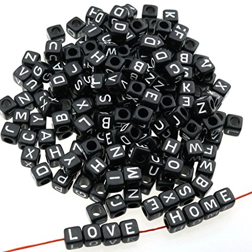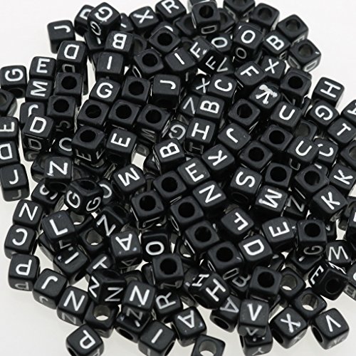 gresorth 800個ブラックキューブアクリル文字ビーズホワイトアルファベットDIYハンドメイドブレスレット、ネックレス、キーチェーン6 x 6 mm