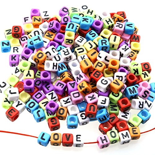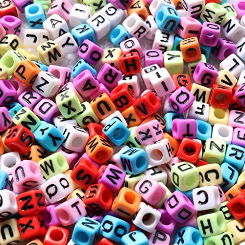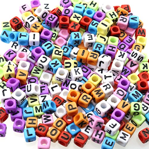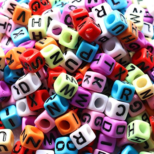 gresorth 800 PCマルチカラーキューブアクリル文字ビーズブラックアルファベットDIYブレスレット、ネックレス、キーチェーン6 x 6 mm