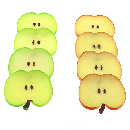 gresorth 8 pcs人工Appleスライスレッド&グリーンフェイクフルーツスライスホームテーブルキャビネット装飾