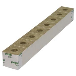 Achieve an optimum balance of oxygen to nutrients with Grodan Delta Gro-Blocks for rapid plant growth. A sustainable and environmentally friendly growing medium. Manufactured from rockwool substrate, these Gro-Blocks are completely sterile, lightweight and easy to use. Unique hydrophilic fiber makes crop production easy to control by allowing efficient use of water and nutrients. Ideal for direct sowing of our Grodan A-OK Starter Plugs, sold separately. When seedling roots coming out of plugs are 1 long, simply place plug in Gro-Block hole. Delta 4 Blocks are ideal for use with small plants, such as strawberries and peppers, for transplanting to our Expert Gro Slabs, sold separately. Sold in strips of 8 blocks. Perfect for use in ebb and flo, Dutch bucket and drip hydroponic systems. Priced per strip.