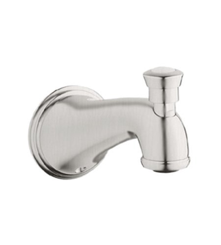 Color:Brushed Nickel Product Description Grohe 13 610 EN0 Geneva Tub Spout, Diverter, Infinity Brushed NickelThe extensive range of GROHE's showering solutions combine hot features with cool styling, and offer a choice of spray patterns to suit your mood.Grohe 13 610 EN0 Geneva Tub Spout, Diverter, Infinity Brushed Nickel Features: Cast brass body Wall mount 3/4' inlet Code Compliance: ASME/ANSI A112.18.M, ASSE Standard 1016, ANSI/NSF Standard 61, ADA Compliant From the Manufacturer Timeless detailing, unpretentious style... Geneva succeeds in capturing the essence of traditional design. Geneva is characterized by the refined flowing lines of its arched spouts. Both the lavatory and Roman tub filler spouts bring the water well above the bowl or tub for a beautifully controlled cascade of water. But the true art of the Geneva line is in the carefully detailed cross and lever handle designs that inspire a traditional warmth without a hint of overstatement. These details are complimented by a gentle flair at the base of the spout and handles that echoes the overall design motif. Grohe Geneva Tub Spout Diverter in Infinity Brushed Nickel # 13 610 EN0. Features include: Cast brass body; Wall mount 3/4-Inch inlet. Code compliance: ASME/ANSI A112.18.1M.