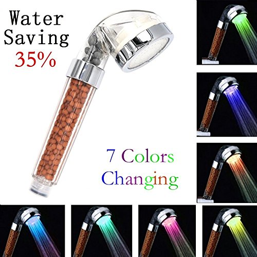 LEDシャワーヘッド フィルターシャワーヘッド 7色 ハンドシャワーヘッド 35%節水浴室スプリンクラー 塩素除去 マイナスイオン発生 バススプレーヘッド[工場直販]。